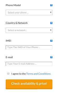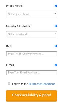 2. Fill in the information about your phone: model, the country & network you originally bought your phone from and the IMEI of your phone (dial *#06# to find the IMEI). Payment can be done by choosing one of the following methods: Credit Card, PayPal, Skrill or CoinBase.