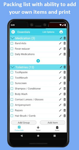 The app now has a customizable vacation packing list that you can edit in the app and print out.