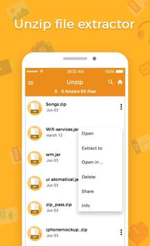 Unzip File Extractor, the world's no 1 zip and unzip utility, makes it easy to create, extract and share zip files on your Android device! Compress files for easier sharing and storage, and stretch your data and storage limits.