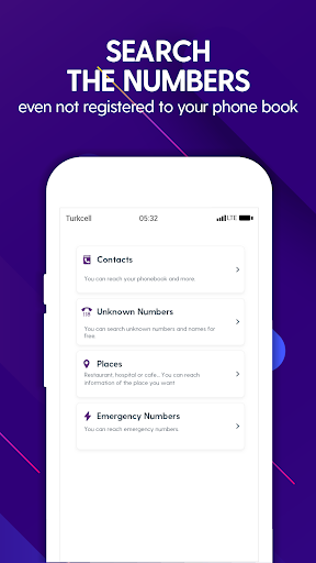 Now, your directory is not just made up of saved numbers, you can also find and call numbers you don't know. Thanks to UpCall, you can query a Turkcell number from a name and a name from a number. In addition, you can search for a place number by simply typing its name, view its location on the map, and draw a route.