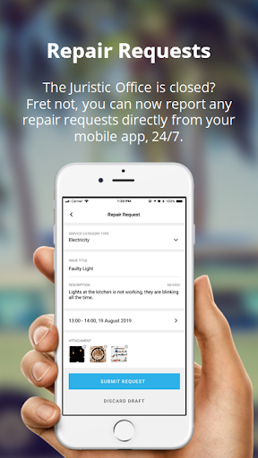 - Repair Orders: Make repair requests based on the Mobile App instead of traveling down to the Juristic Office