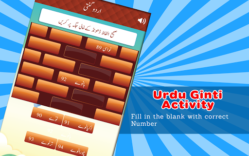 Urdu Ginti contains 5 activities for interactive Urdu learning: