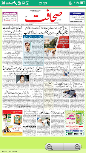 ★ Sahafat is a daily Urdu newspaper. Published from Mumbai, Delhi and Lucknow.
