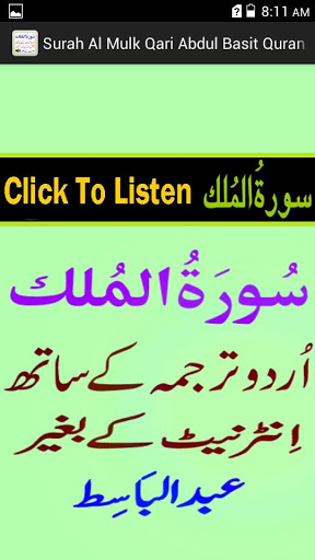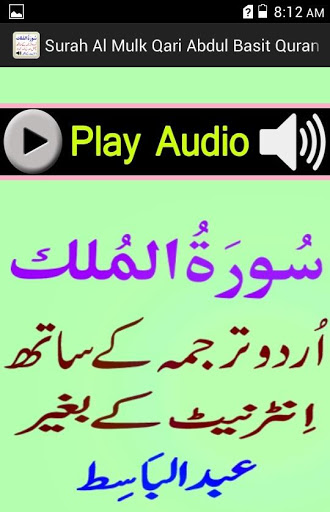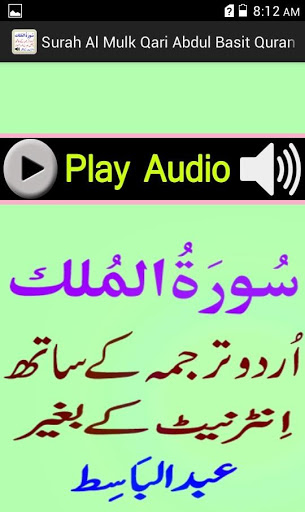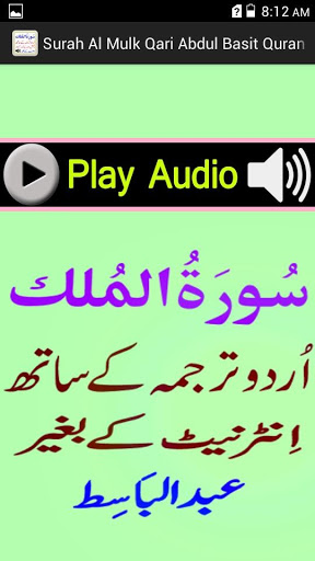 This is the best app of Surah Al Mulk with urdu translation in Q A Basit Voice which play Audio Mp3 Tilawat without internet.