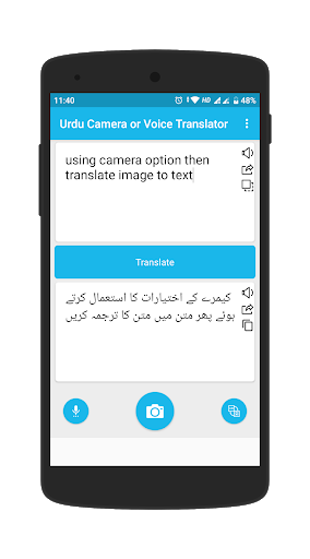 -> Urdu Camera & Voice Translator is the only application where you can convert from one language to another by simultaneous camera, voice and text.