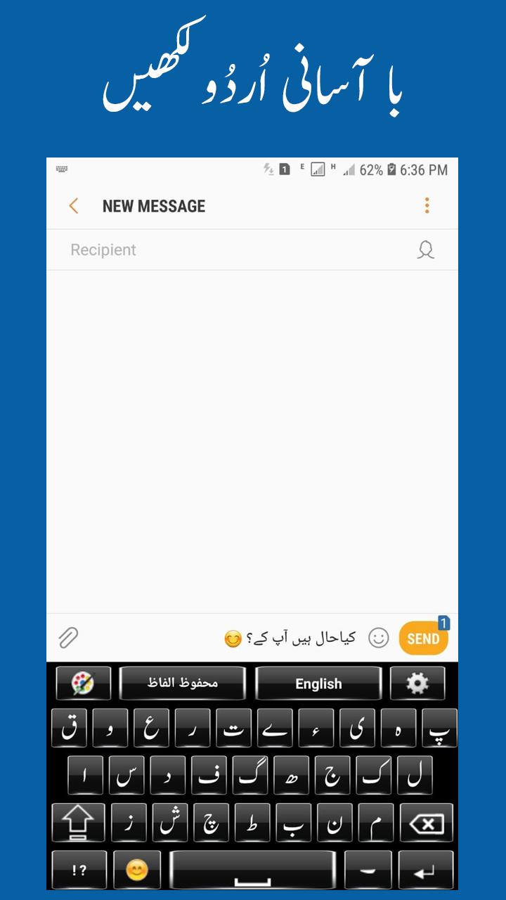 Urdu easy typing using Urdu Keyboard Phonetic Version. Express your feelings in your conversations using best emoji keyboard urdu. Urdu typing is now made easy for all of you just install asan urdu keyboard and enjoy. Post your thoughts, comment and reply in Urdu using best urdu keyboard for facebook. Make your gossips more interesting and have a lot of fun by chating in urdu using urdu keyboard for Whatsapp. Its not only for urdu lovers, arabic keyboard is also a gift for Arabian people you can also write and type messages in arabic using urdu keyboard. Same like arabic, urdu keyboard have a wide range of letters and character for different languages like punjabi, pashto, sindhi, saraiki, farsi, persian, bengali and hindi speaking. Type urdu keypad and experience urdu keyboard with smiley, stickers and GIFs. Urdu Keyboard with beautiful background, background photo and different keyboard themes increases your interest and gives a positive impression according to your favourit color scheme. Urdu-Eng is the easy and on board option to switch between English and Urdu languages with a single click.