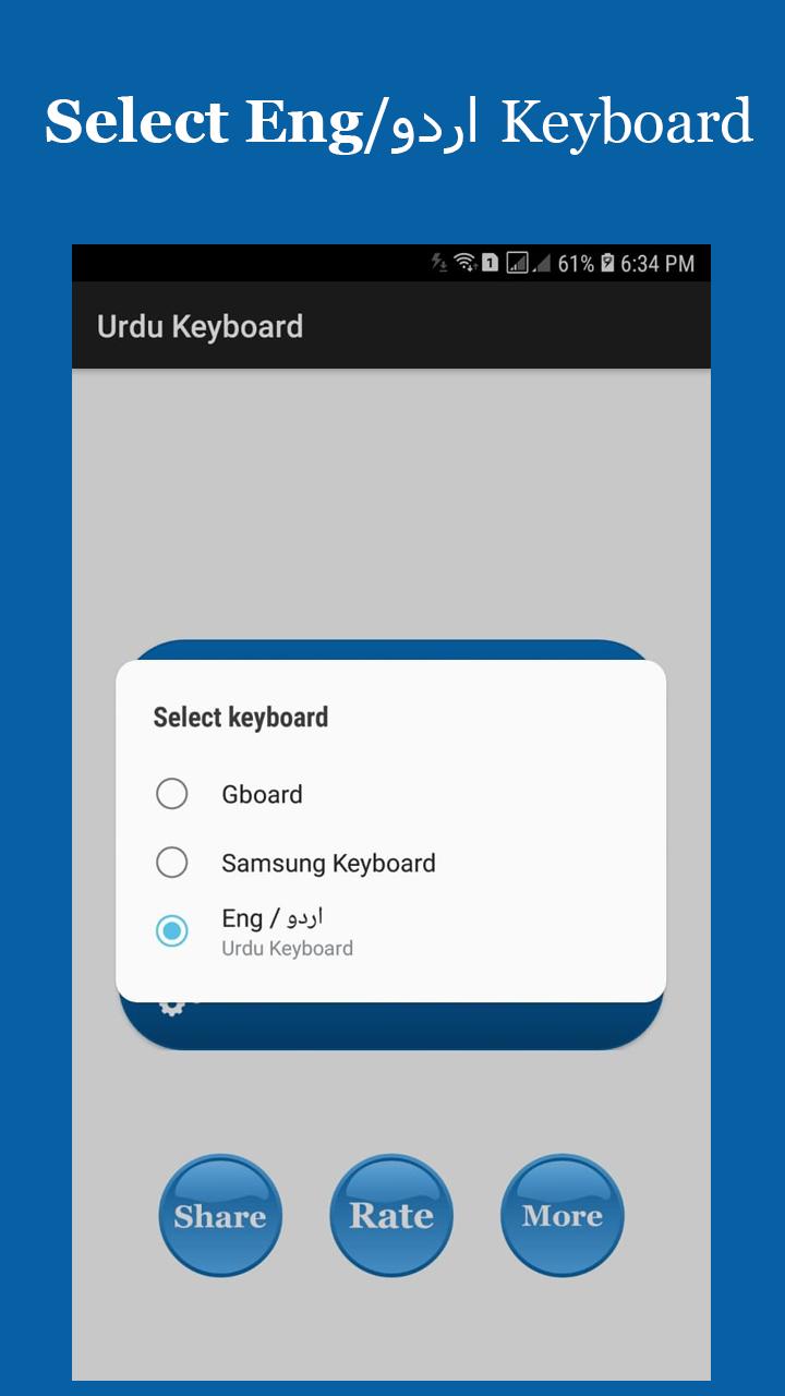 - Press the #2 Button "SWITCH KEYBOARD" and Select the "Eng/اردو".