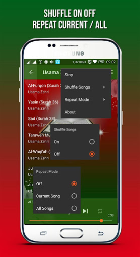 - Shuffle song or Track (play random murottal)