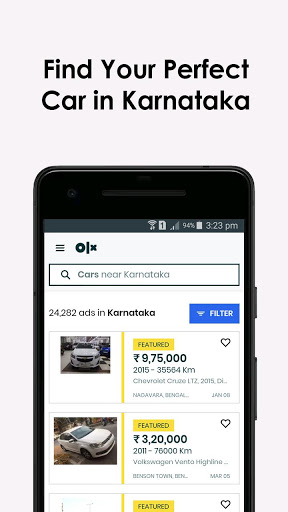 This FREE Android app offers buying and selling used cars in Karnataka. Browse from thousands of available listings and buy second hand cars in Karnataka. Now it is very easy to buy used cars for sale in Karnataka.