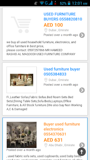 Used Furniture Dubai - UAE: If you are looking for a reliable source of second-hand furniture from long time, then check out our FREE Android App. It is is the best platform where you can BUY / SHOP top quality used furniture in Dubai. This APP is just brilliant and fabulous as it covers some premier online shops for used furniture all over Dubai (Abu Dhabi, Sharjah, Al Ain, Ajman, Ras-al-Khaymah, Umm-al-Qaywayn, Al-Fujayrah).