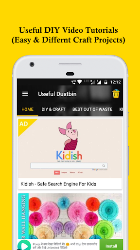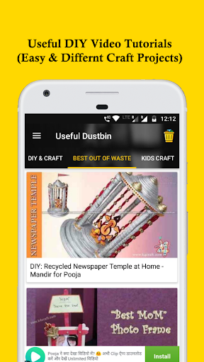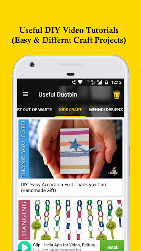 Here we bought a Trending video tutorial application "Useful Dustbin". Most famous ideas from all over. Here lots of DIY, craft, best out of waste, mehndi, rangoli videos from various internet sources. We update many tutorials daily and its will be help to your creative work. Very useful application for craft lover and for your kids.