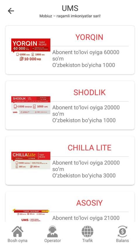 ✭ Tariff rejalari haqida ma'lumot