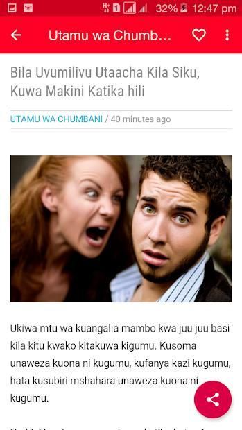Here provides top Free Android Apps. 20,000+ users downloaded Utamu wa Chumbani latest version on 9Apps for free every week! All its functions are there and updated. This hot app was released on 2018-10-01. However, has been a fashionable app for a long time.