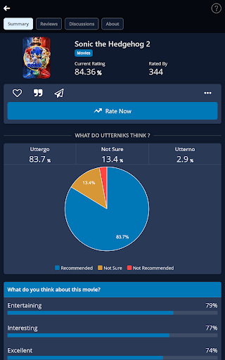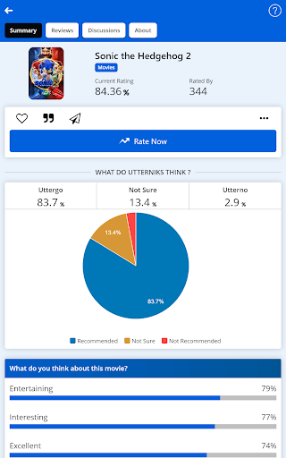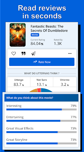 On Utternik, you can rate Restaurants, Movies, Books & more. Utternik replaces the outdated star rating system. All your Word of Mouth recommendations and the content you love or hate in one single app. You can quickly express your opinion & rate movies, books, restaurants, apps, games, hotel, gadgets, TV shows and much more in one single app.