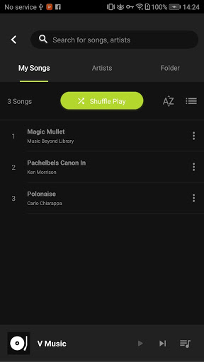 V Music provides you a unique app to listen to your favorite music for free, and it play music for HD quality. V Music helps you Search and stream millions of freely available songs among millions of songs in the vast SoundCloud® catalog and discover new and trending music by genres, Pop, Rock, Hip-hop...You can organize songs into unlimited playlist, and review your recently played music in My Library part.