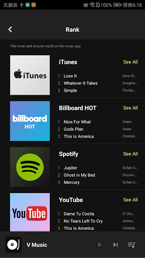 V Music is the best free music discovery app, which has beautiful and intuitive user interface. It is also a podcast player, which allows you listen to music, news, podcasts, sports, talk and comedy shows.