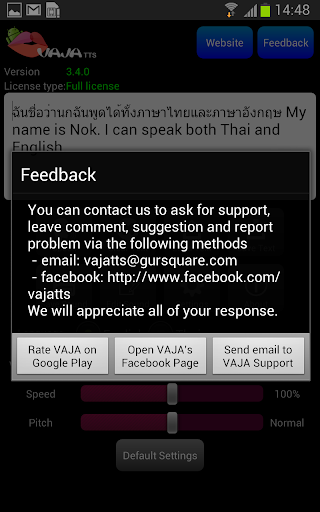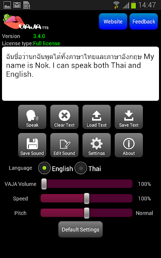 VAJA is a Text-to-Speech engine developed by National Electronics and Computer Technology Center (NECTEC) and distributed Guru Square Co., Ltd. Currently supporting English and Thai language.