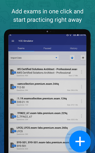 This is an Android version of popular test taking application VCE Exam Simulator. It allows you to take tests from .vce files on the go.