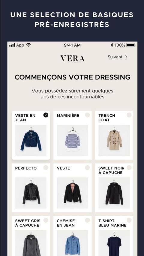 VERA is the application that takes into account your tastes to give you daily new combinations of personalized outfits.