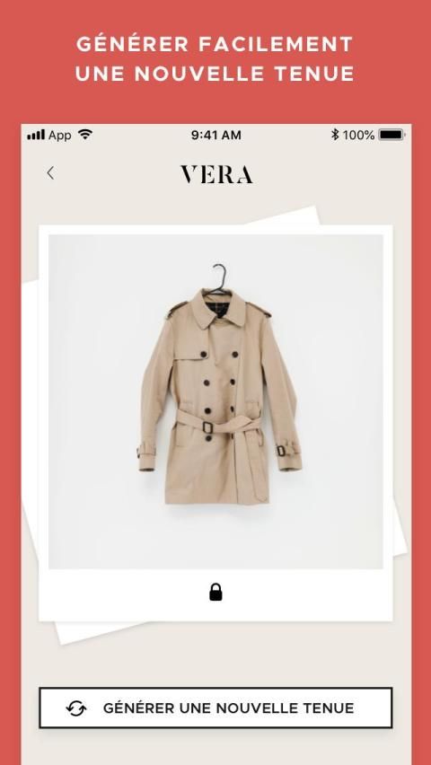 Retrouvez chaque jour 3 idées de tenues de votre dressing en fonction de vos goûts et de la météo. VERA est l'unique application mode qui vous crée des tenues et vous habille le matin.
