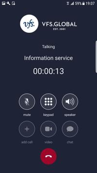 Select resident country, select visiting country and call or chat to VFS Global Center via Internet connection for free.