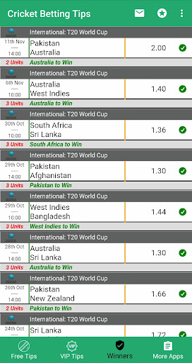 Our VIP Betting Tips Cricket app gives you free and VIP Cricket Betting tips daily. Free users will get instant access to tips like total match runs, total match sixes & fours, highest individual score, 1st 6 overs score and many more. VIP users will get match winner tips for every match, you can get access to this section by paying a small subscription fee.