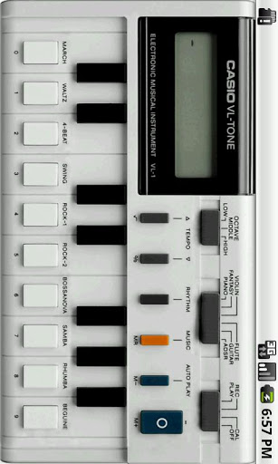 But you don't have to search Ebay to enjoy playing the "Fantasy" sound over a nice "Rock-2" blip. Now you can have the "Unterlanders Heimweh" demo tune right there when you need it, feeling a little lowlandish homesick. The VL-Tone app contain the factory presets and rhythm patterns in all their distorted and noisy glory, carefully sampled from an original Casio VL-1. Never have so few bits been sampled by so many for so little, to paraphrase Churchill.