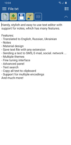 With this text editor you can view and edit the contents of the files. Also, it is possible to save the text as a note for later viewing and editing in this application.