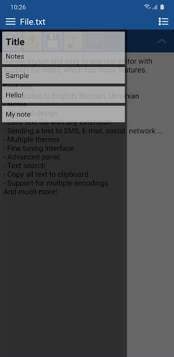 Handy, stylish and easy-to-use text editor with the ability to work with notes.