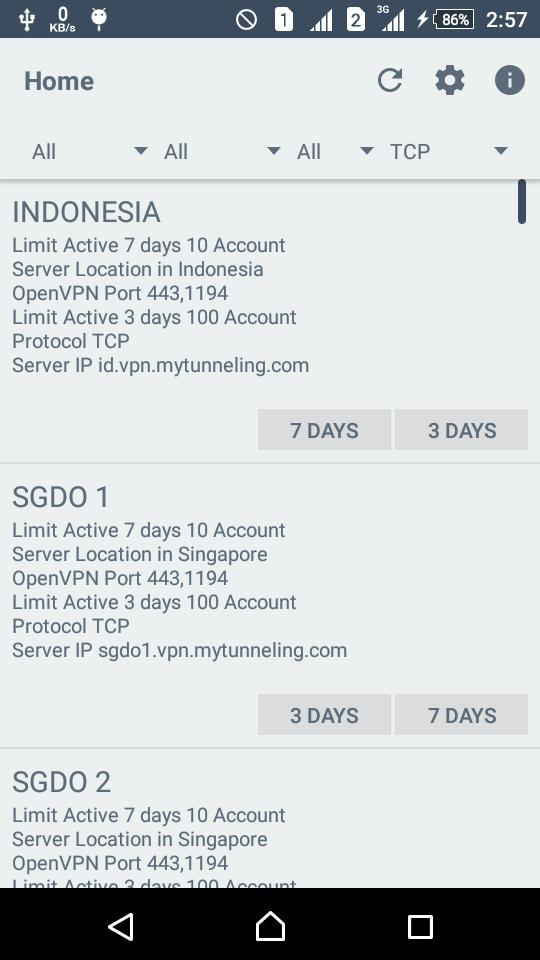 In this application you can pick an vpn account based on the vpn provider,active days,country, or vpn type. And then