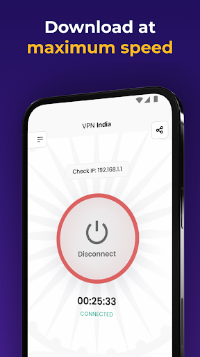 + For your convenience, we introduced two separate connection buttons. The first connects to a selected VPN in the list. The second connects directly to a Indian VPN. It's that simple. In case you need to change IP address, just select a server in some other country and establish a connection. In case you need to get a Indian IP address, just connect to a Indian VPN server in one click.