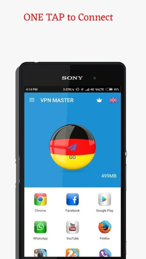 No need an account, just one click to connect. GERMANY VPN doesn’t track or keep any logs of its users and their activities.