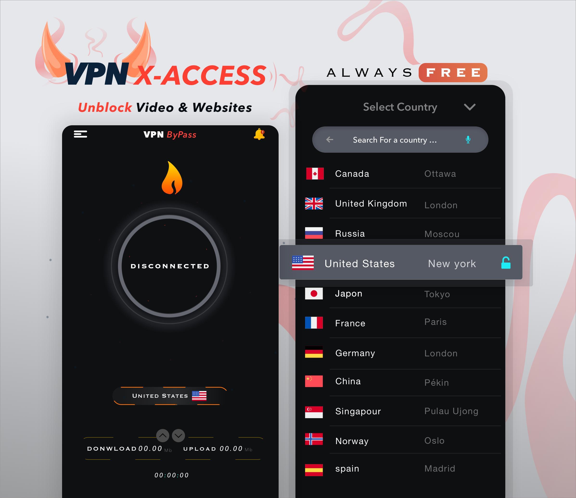 Unblock websites & Videos By installing ou Free app, Not need any configuration , Freedom on Surf the web securely and protects your online privacy and masks your IP and Location .with our X-VPN