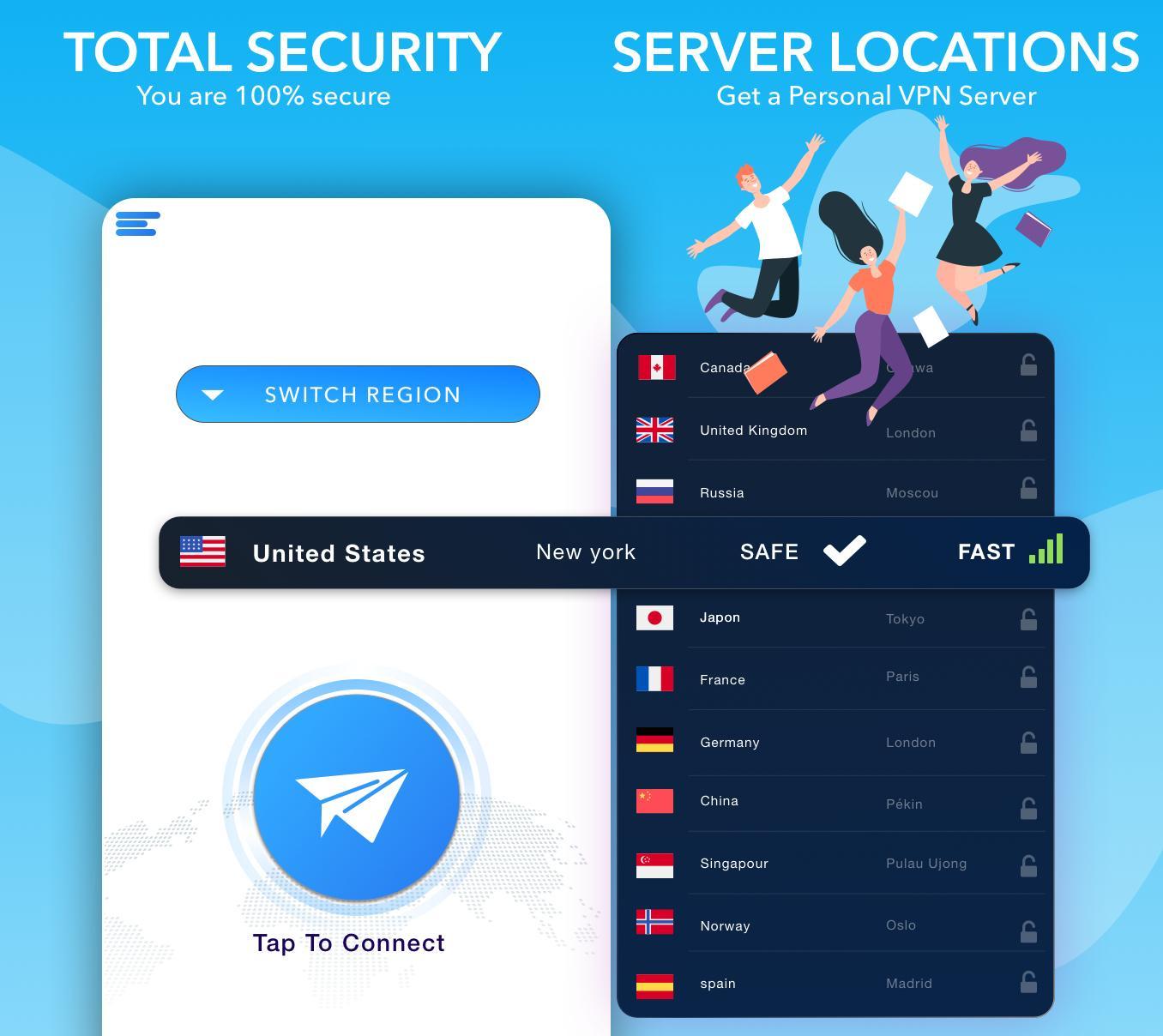 You can connect to fastest VPN proxy servers from around the world. More VPN proxy servers are added to your list constantly. Experiencing not ideal connection speed? Don’t worry, simply choose another VPN proxy server will normally solve your problem. Free VPN is one of the fastest Turbo VPN proxy service providers on Play Store.