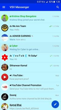 VSV Messenger is a cross-platform instant messaging application that allows Android smartphone users to exchange text, image, video and audio messages for free.VSV Messenger is a messaging app that works over the internet, just like WhatsApp or Facebook Messenger. That means you can send messages for free by using a wi-fi connection or your mobile data allowance (providing you have enough data).