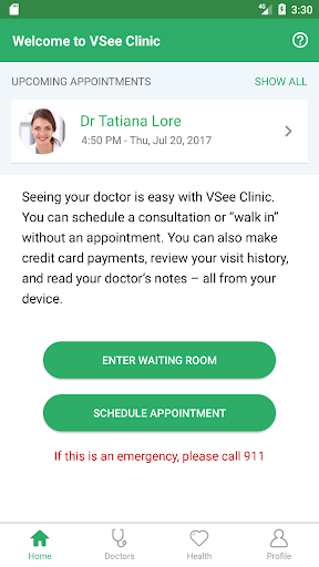 Seeing your doctor is easy with VSee Clinic. You can schedule an consultation or “walk in” without an appointment. You can also make credit card payments, review your visit history, and read your doctor’s notes – all from your Android device.