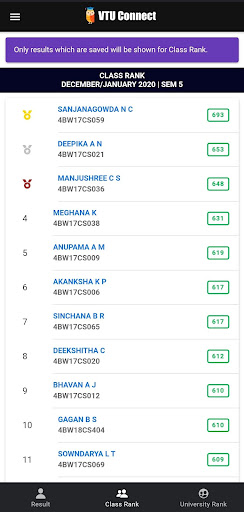 #PREVIOUS SEM RESULTS, CLASS RANK & UNIVERSITY RANK