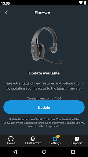 The B650-XT, S650-XT, M300-XT, M300-XT SE, B250-XTS SE and B450-XT (BPB-45020) enable firmware updates over-the-air using the BlueParrott App, allowing you to keep your headset up to date without having to connect your headset to the computer.