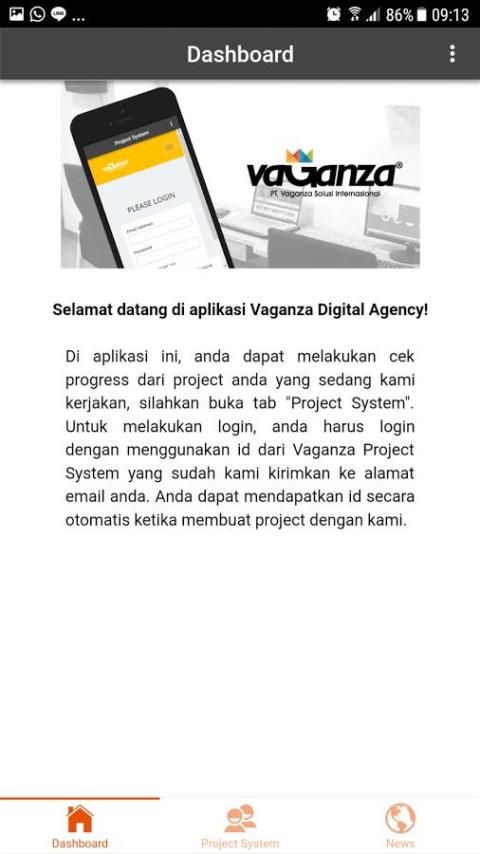 This application is a special application for the client PT. Vaganza International Solutions (Vaganza Digital Agency). In this application there is a project in the system to see the development / progress of the project, invoices, proposals, quotes, deadline, task, job description of Vaganza team, and so forth. Thus, it will facilitate the client in view the progress of their project.