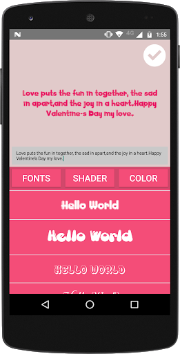 ✔ Text Editor available with a beautiful collection of font style to write your own quotes on Valentine's Day greetings.