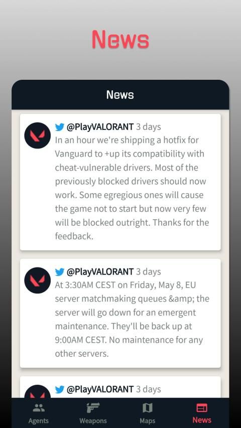 Get stats on Agents, Weapons and Maps as well as a dedicated news section.