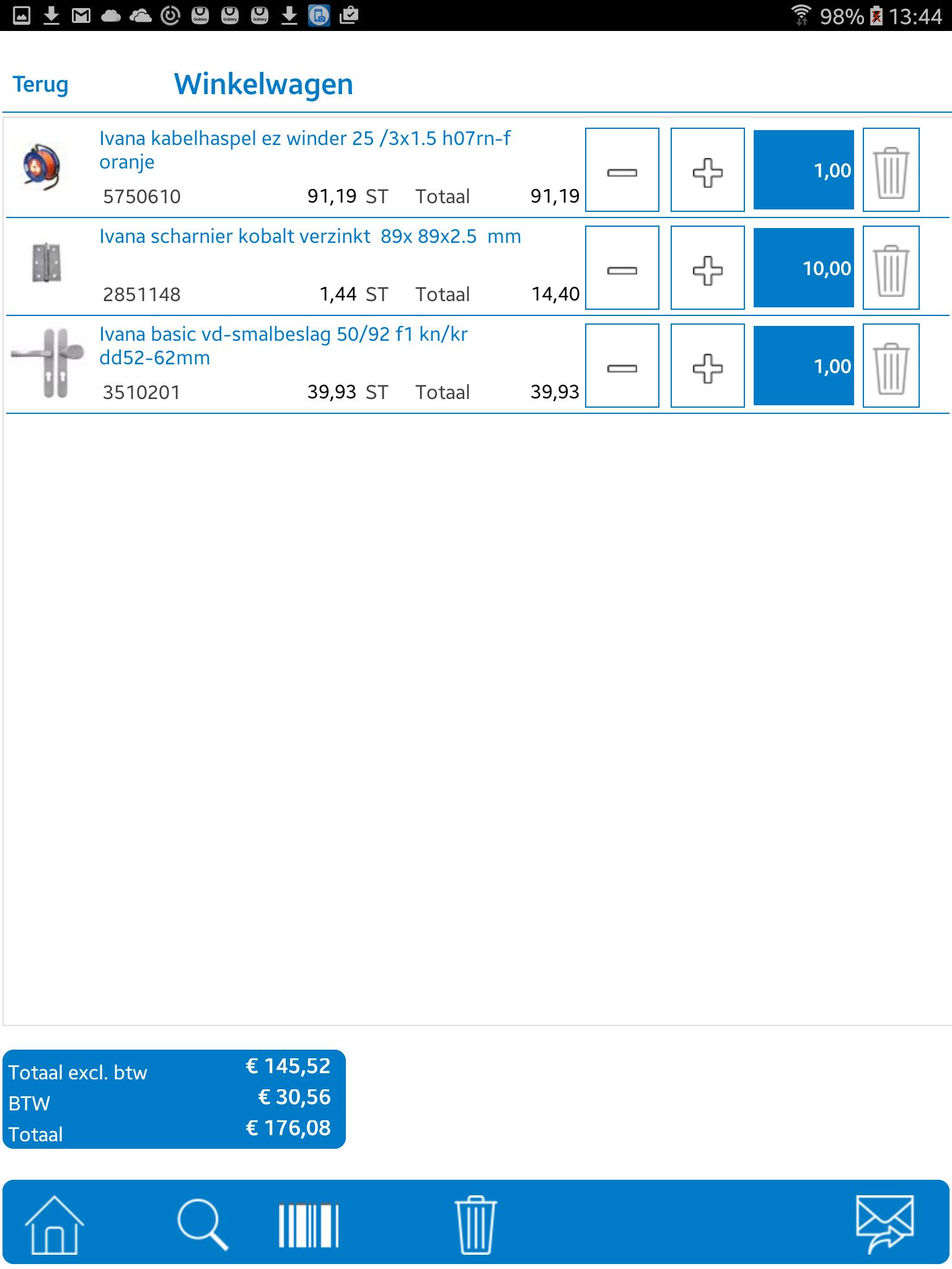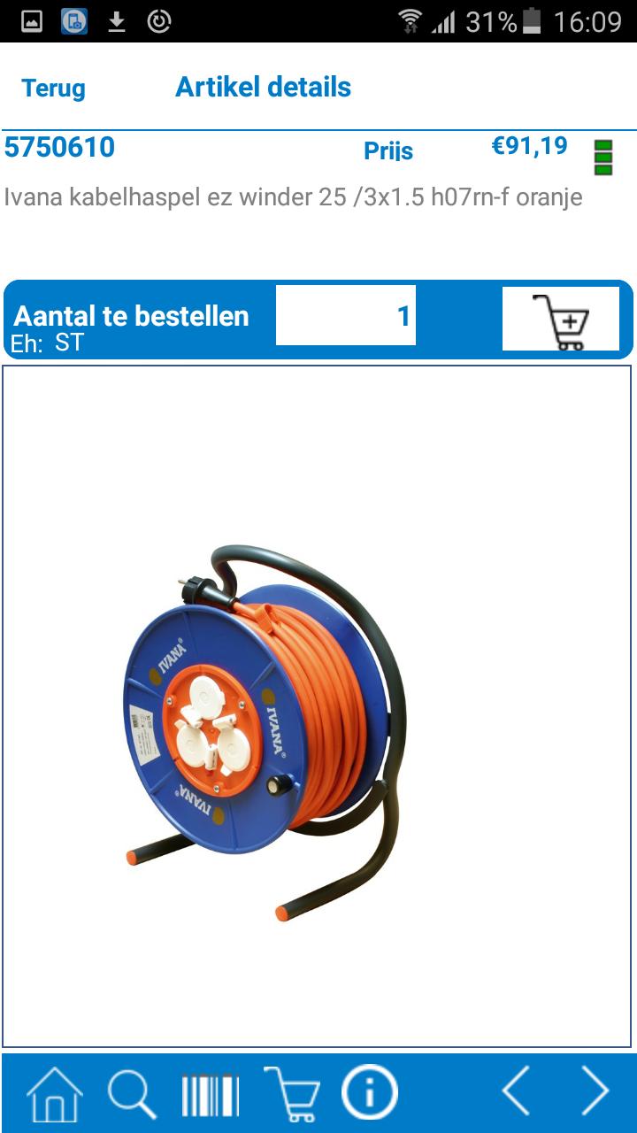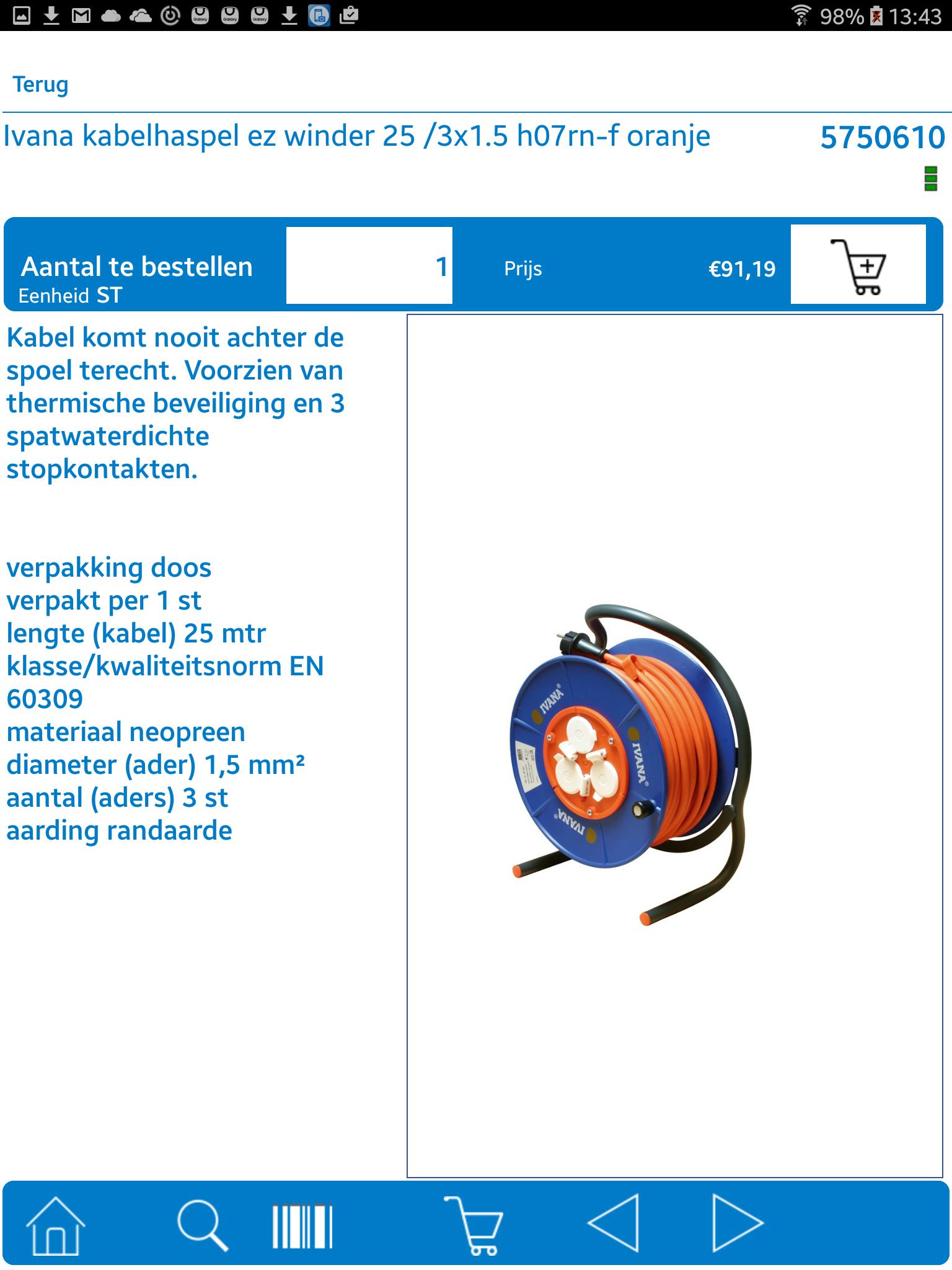 - Met behulp van de camera en barcodescanner artikelen bestellen en artikelinformatie opvragen.
