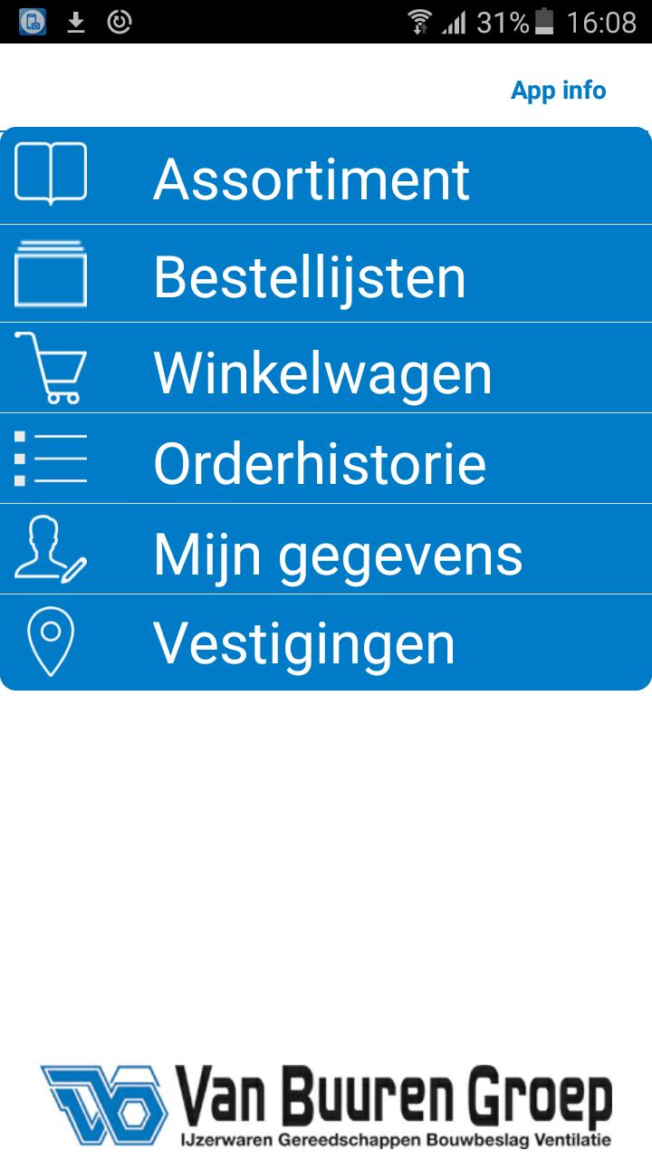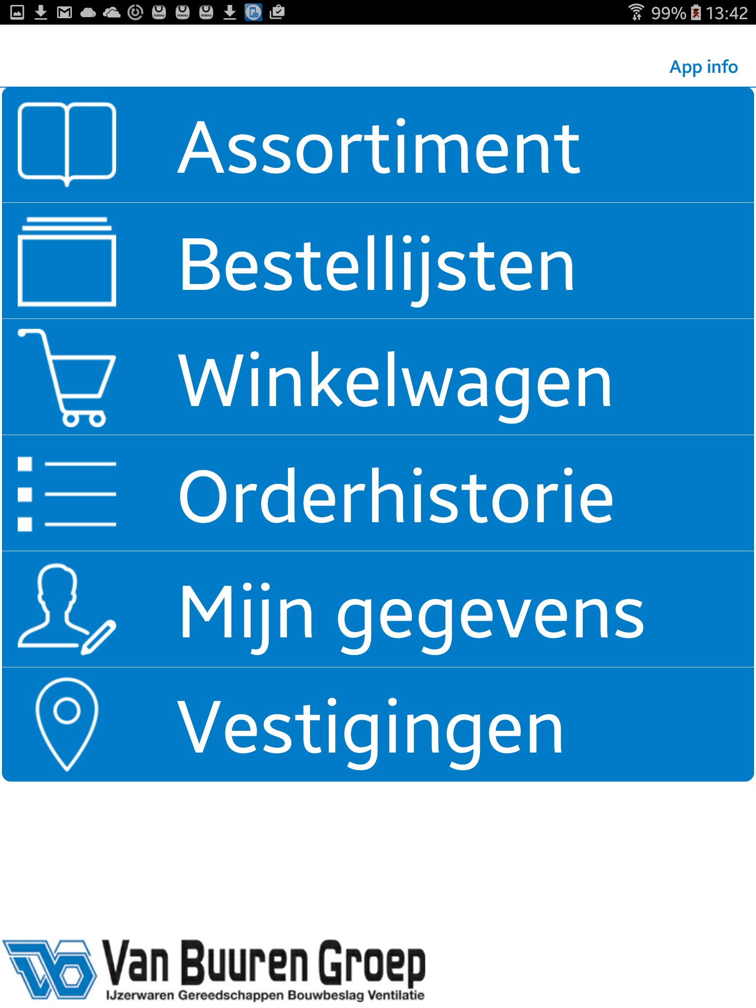 Met behulp van de app van de Van Buuren Groep kunt u artikelen bestellen en artikelinformatie opvragen: