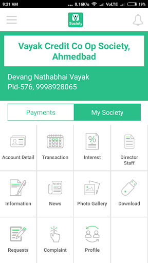 Member will get all information of society and can get his transaction detail in his mobile. He can send request and complains also. Society News, Events, holidays, forms and many useful detail is now available at any time in his finger tips.