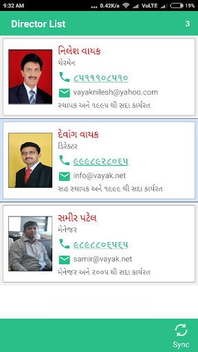 * Director / Staff - in mobile App a list of all directors and staff member can be displayed to member