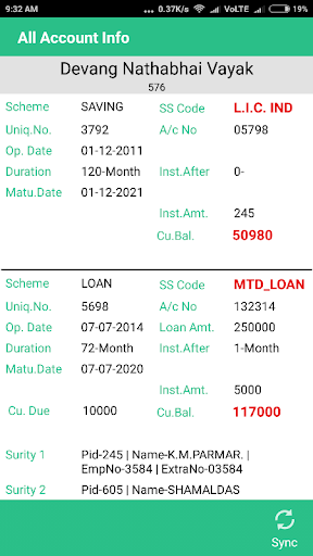 * All Account Summary - In this App member can view all his account summary in one screen. With all detail like Scheme name, A/c no., A/c opening Date, Maturity Date, Closing Balance, Inst. Amt., Interest %, and surety detail in loan.