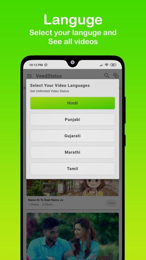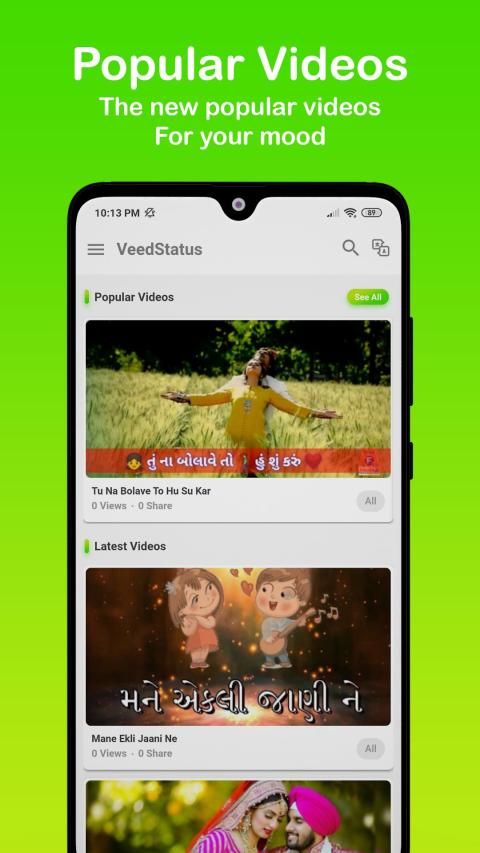 Enjoy best app for Collection of Video status in various language and various categories.