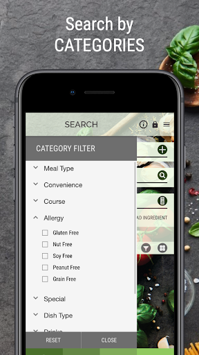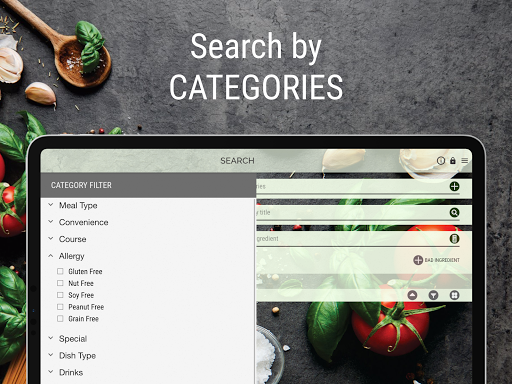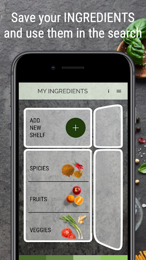Use the My Ingredients feature to predefine the ingredients that are always lying around in your cupboard. Add your favourite spices or foods with longer shelf life, veggies and fruits you simply can’t go without or any other ingredient you’d like to include in your next culinary masterpiece. You’ll be able to use those ingredients in your search.