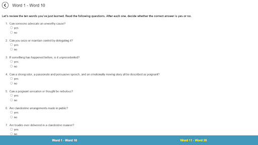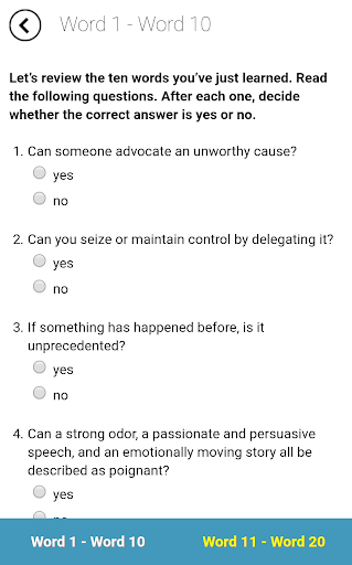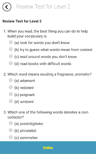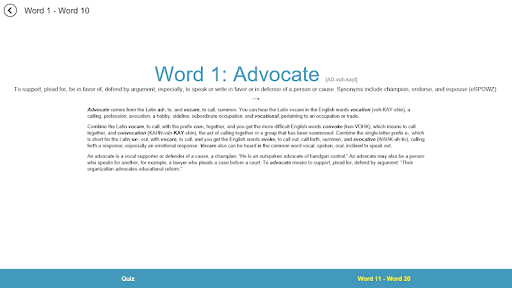 You will proceed through ten levels of vocabulary, each level more challenging than the last. For example, Level 1 contains words familiar to about 60 to 70 percent of adults—that is, words known to many high school graduates and most college graduates. By the end of Level 5 you will have raised your vocabulary to about the 75th percentile—the top quarter of all educated adults. By the end of Level 8 your vocabulary will have surpassed that of most executives and professionals, including those with advanced degrees. And when you complete the tenth and final level you will have progressed beyond 95 percent of the entire population. You will command an armory of words that only a handful of people in every thousand can match.