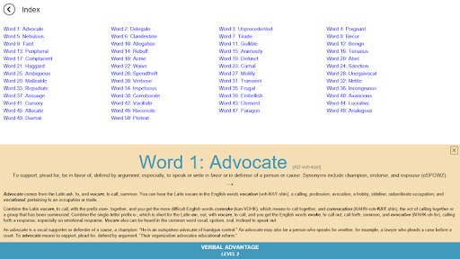 Verbal Advantage provides a complete learning experience, with clear explanations of meanings, word histories, usages, pronunciation, and more. Far more than a cram session for a standardized test, the book is designed as a lifetime vocabulary builder, teaching a vocabulary shared by only the top percentage of Americans, with a proven method that helps the knowledge last.
